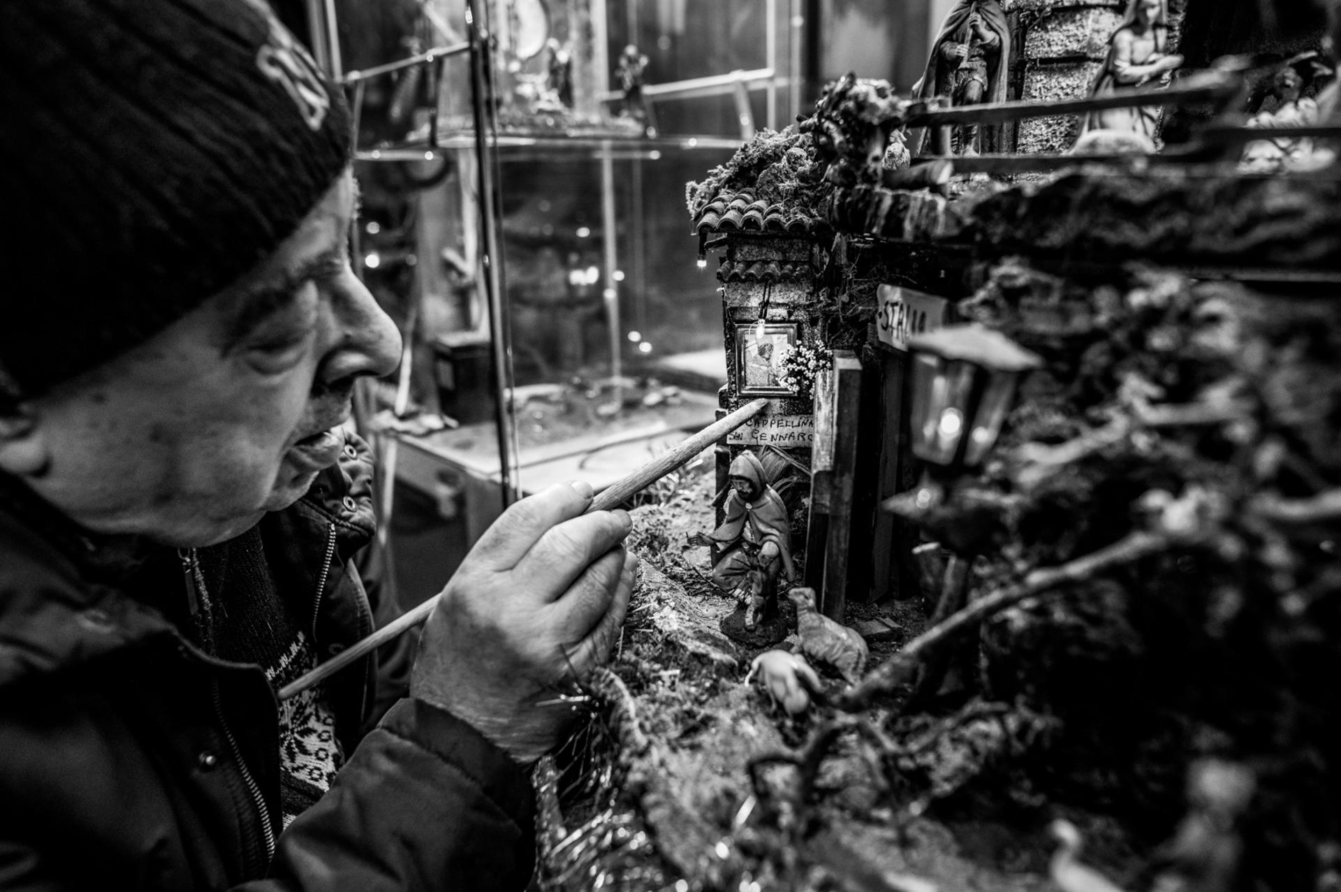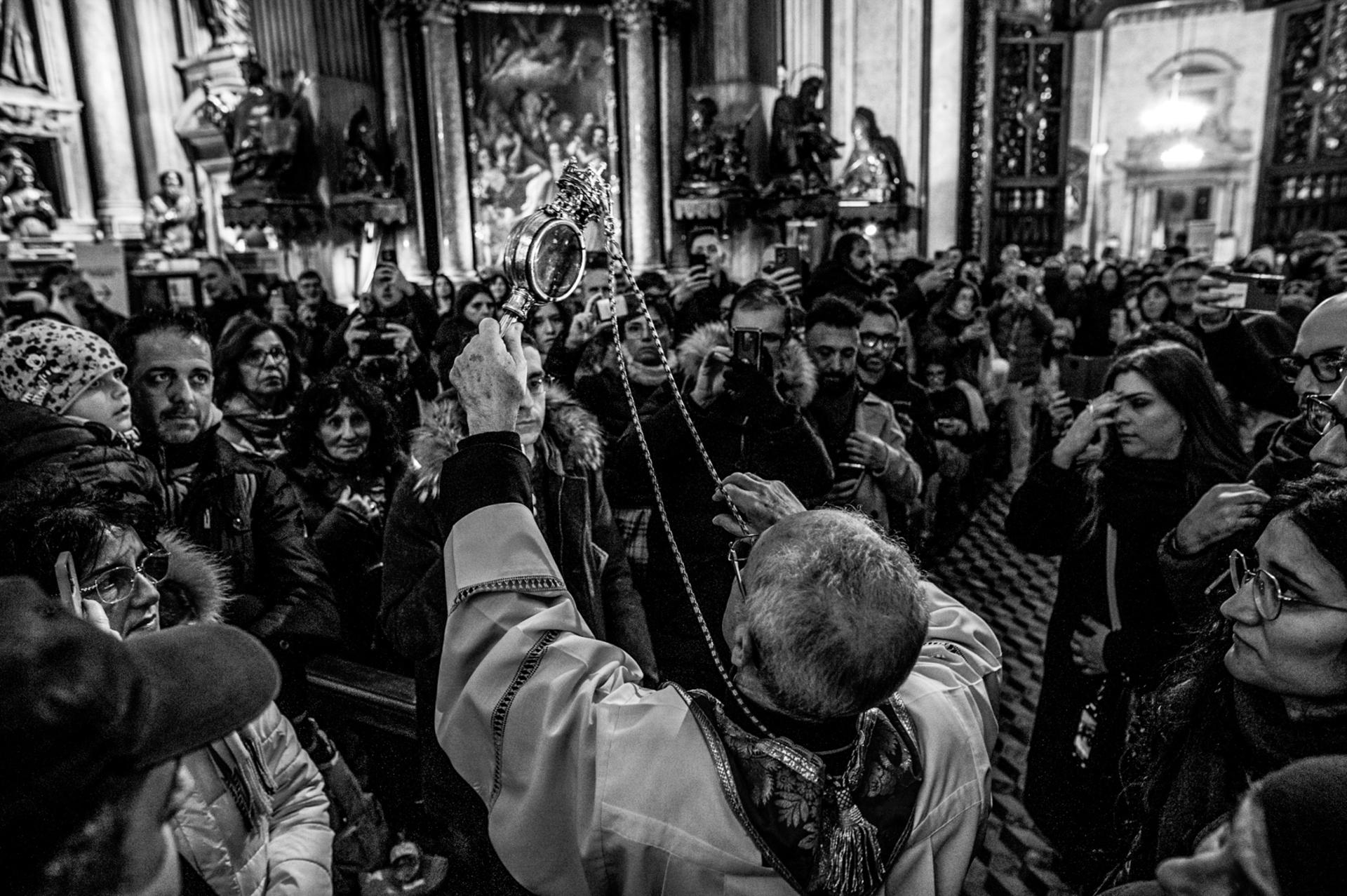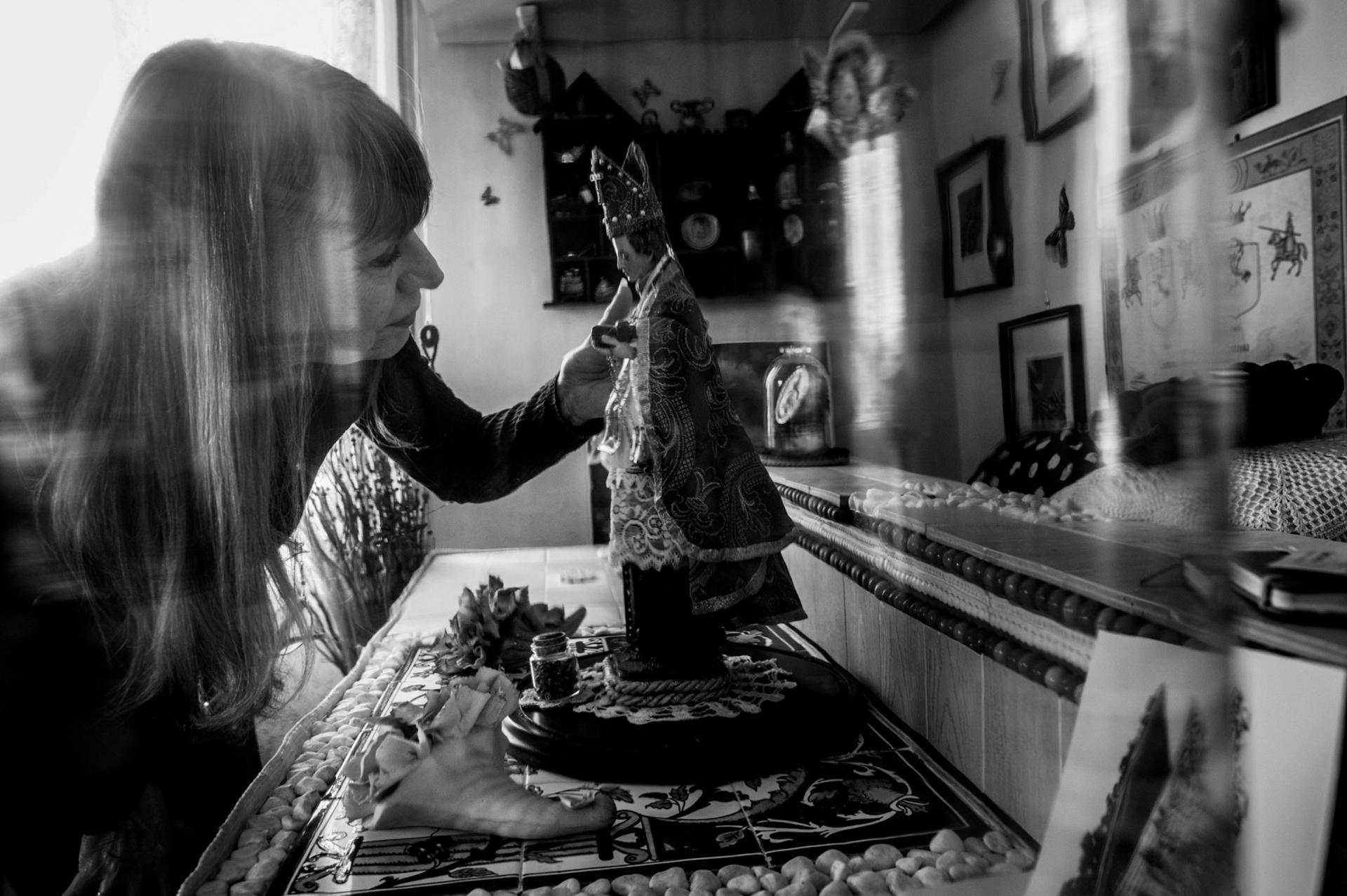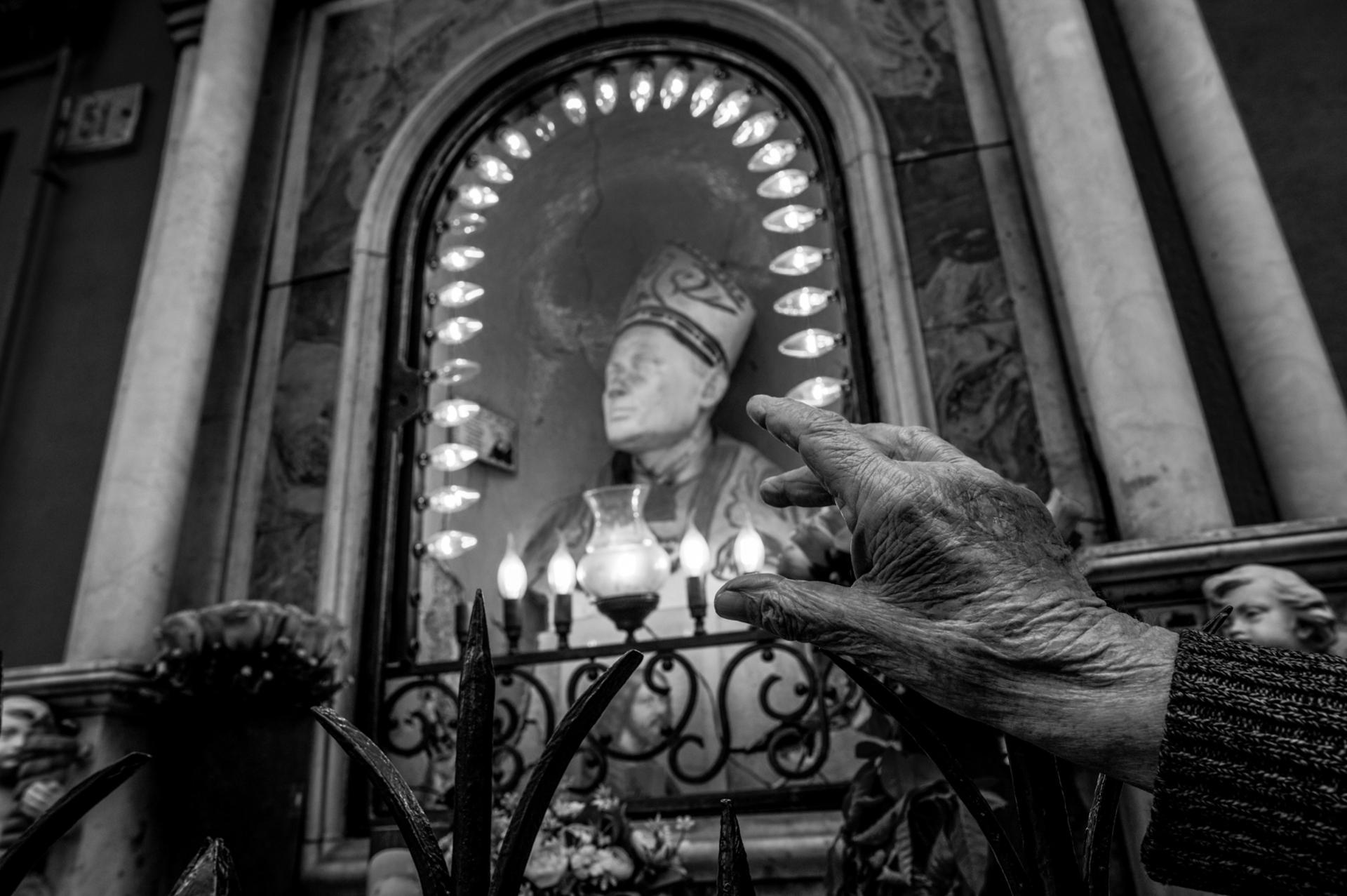 La fede al di fuori dei riflettori è intima e riservata e per poterla documentare con la macchina fotografica è necessario conquistarsi la fiducia delle persone, entrare nelle loro case e comprendere le loro vite, alla ricerca delle tracce di questo santo così famoso, così visibile nelle ricorrenze ufficiali ma che poi sembra sparire come un fiume sotterraneo nella vita di tutti i giorni.
